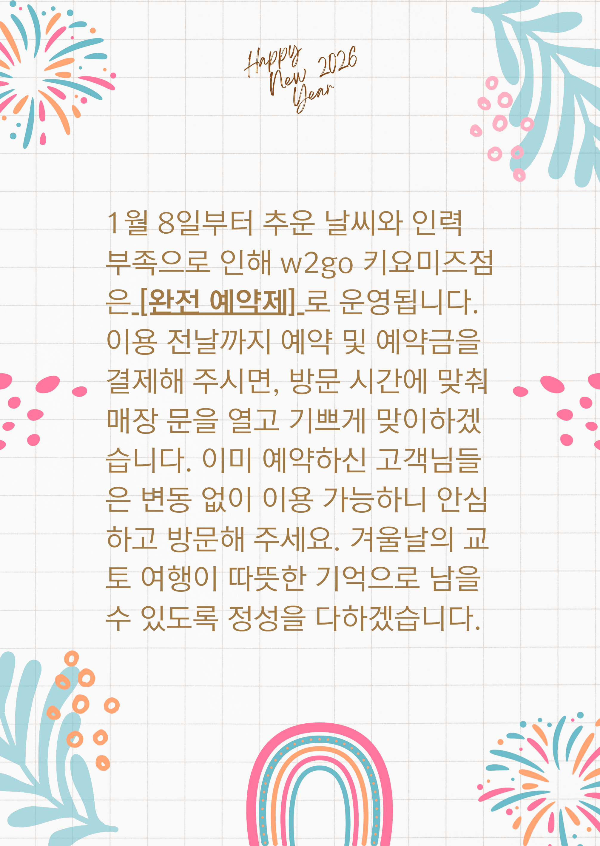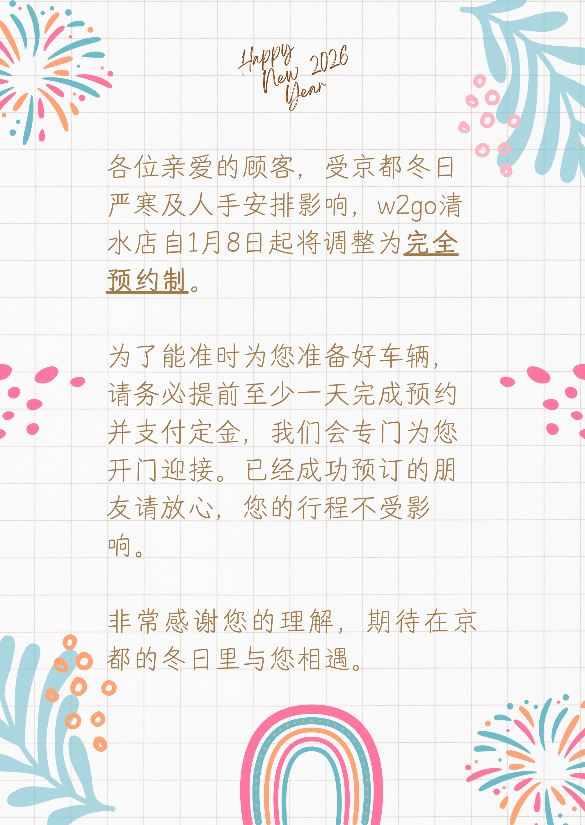 Reservation-Only Service at w2go Kiyomizu from January 8th